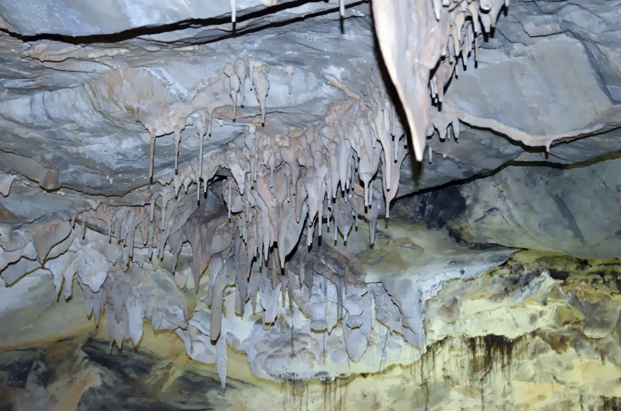 The caves were discovered by Walter Mercer in 1885 and were named after him, of course! He was looking for gold, but found a much more profitable business in selling tours of his cave to miners for a pinch of gold dust. Before electric light, the tourists would hold candles on boards in their mouth to light the way. The above picture shows aragonite crystals on the cavern walls that were made famous when presented at the 1900 Paris World Fair.